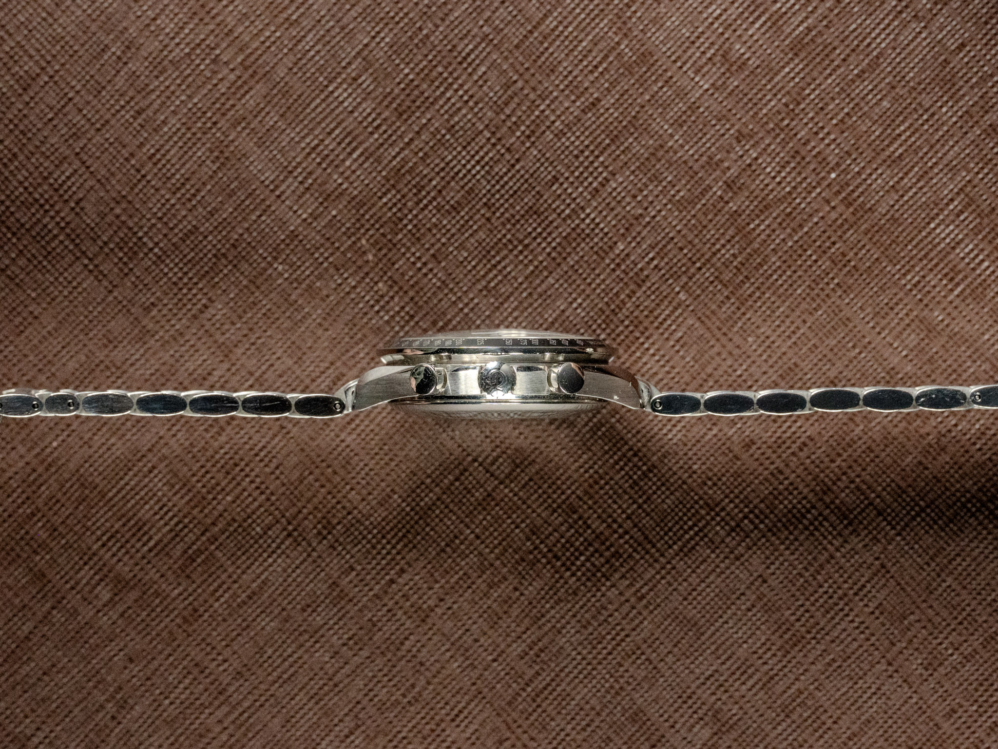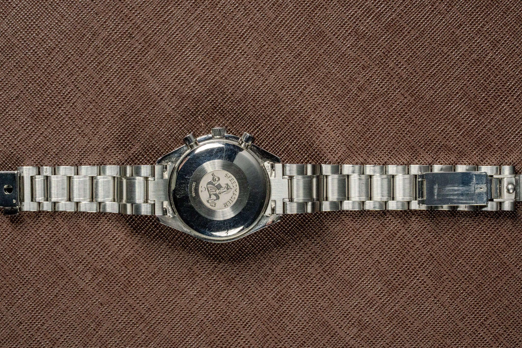 The case shows minor signs of wear consistent with regular use. Professional polishing can be arranged free of charge upon request. The bezel insert remains in good order with legible markings and no significant damage. The crystal is clean with no notable marks. The watch is presented on its original Omega stainless steel bracelet with additional spare links included, offering a comfortable and secure fit.