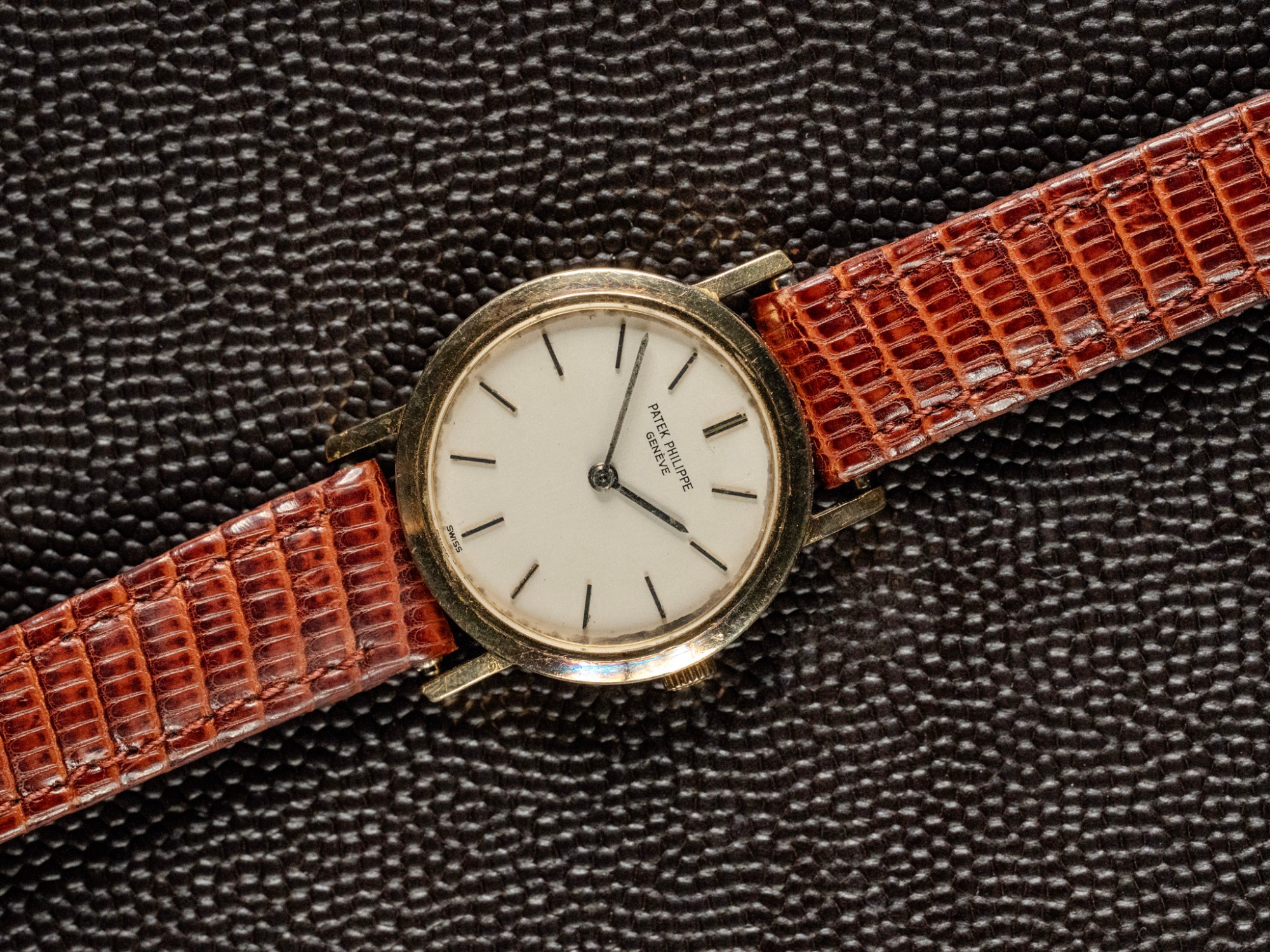 The reference 4184 represents one of Patek Philippe's more interesting ladies' Calatrava configurations from the 1970s, combining the refined aesthetics of the Calatrava line with an automatic movement, the caliber 16-250, at a time when most ladies' dress watches were still fitted with manual or quartz calibers. Produced in modest numbers in 18k yellow gold, it remains an elegant and genuinely wearable vintage piece for collectors drawn to understated Patek design.