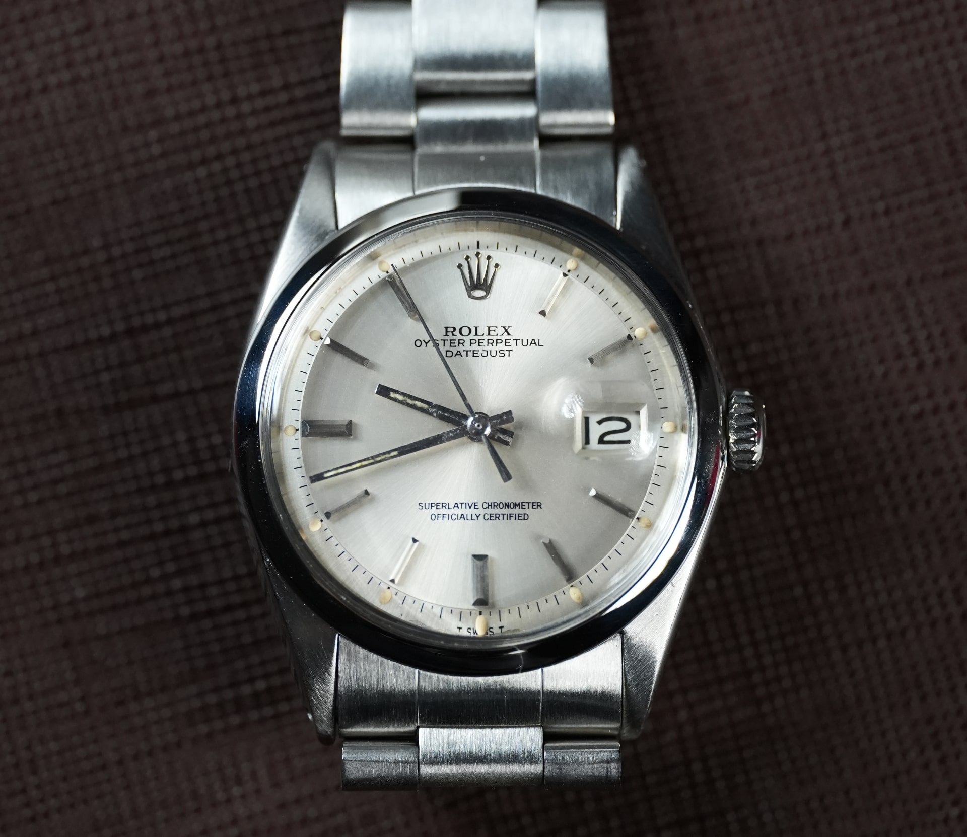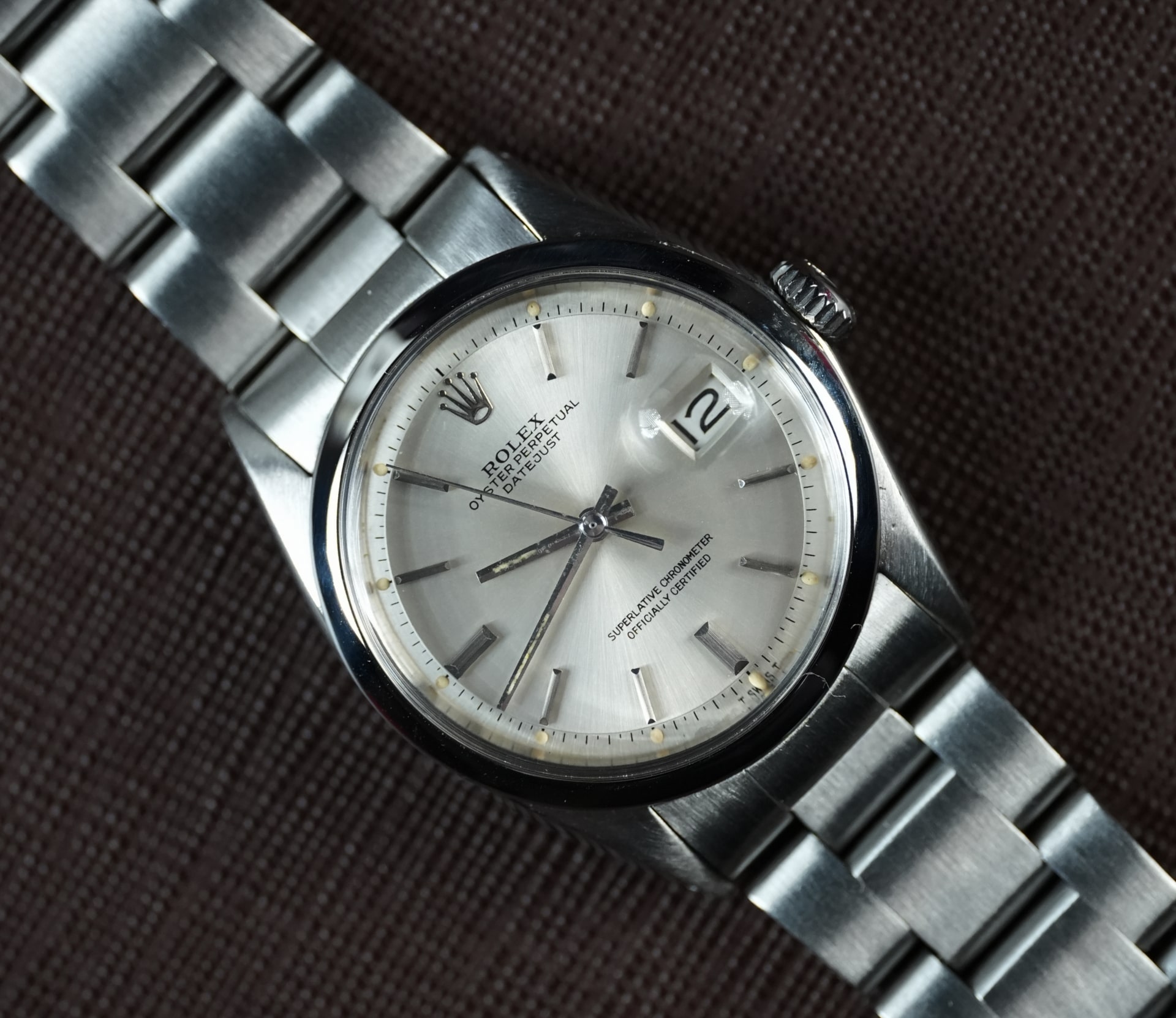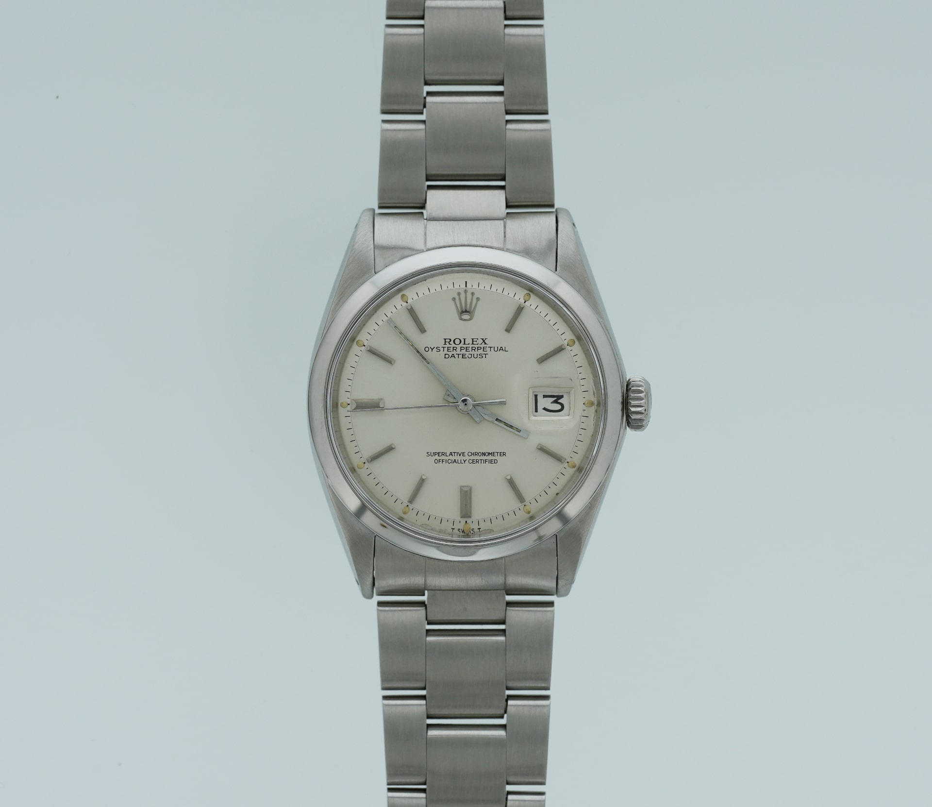 The Rolex Datejust ref. 1600 from 1971 distills the model’s essence into a clean 36 mm steel case with a smooth bezel. Historical note: within the 16xx family, the 1600 is the smooth-bezel counterpart to the fluted 1601 and engine-turned 1603 of the late 1960s–early 1970s.
