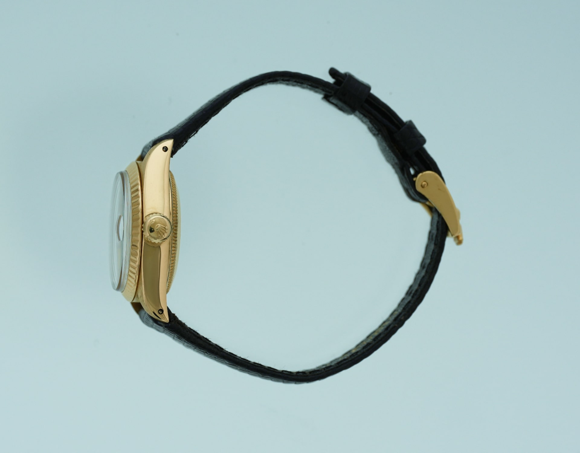 Comfortable, dress-friendly size at 26 mm. Delivered on a leather strap with Rolex buckle; set includes the watch and box. Insured worldwide shipping from the EU available; additional photos on request.
